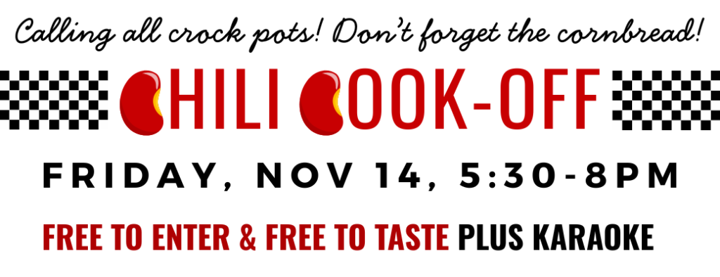 Bring the heat—or bring your appetite. Enter your best chili or favorite dessert, or come taste and help pick the winners. Bring the fam, friends and neighbors – everyone’s welcome!